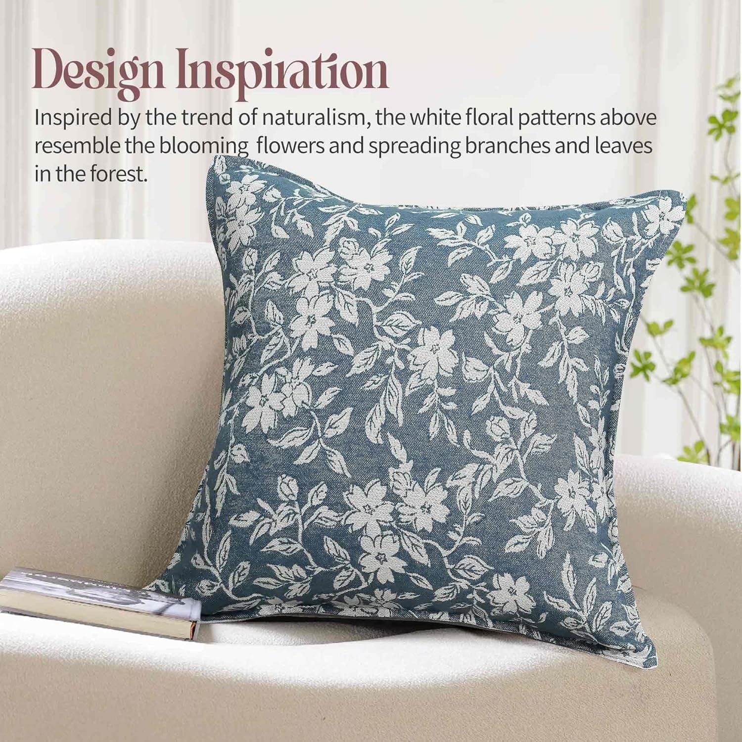 - Product & Style:2-pack 20"x20" floral covers (no inserts). Neutral blue-white blooms blend with Modern/Farmhouse decor. UV-resistant for patio use. Instantly elevate sofa/bed with rustic elegance