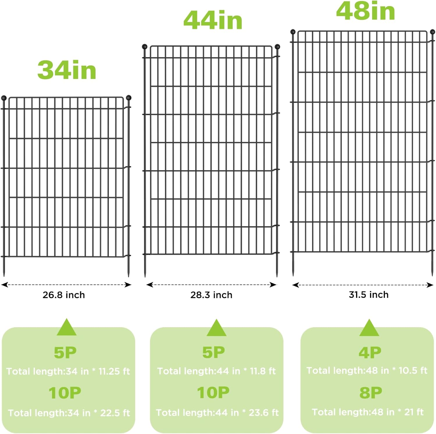 10 Panels No Dig Garden Fence with Gate, 44in(H) × 23.6ft(L) Decorative Metal Outdoor Dog Fence, Rustproof Pet Fencing for Yard, Patio, Flower Bed -Temporary Fencing| Easy to Install