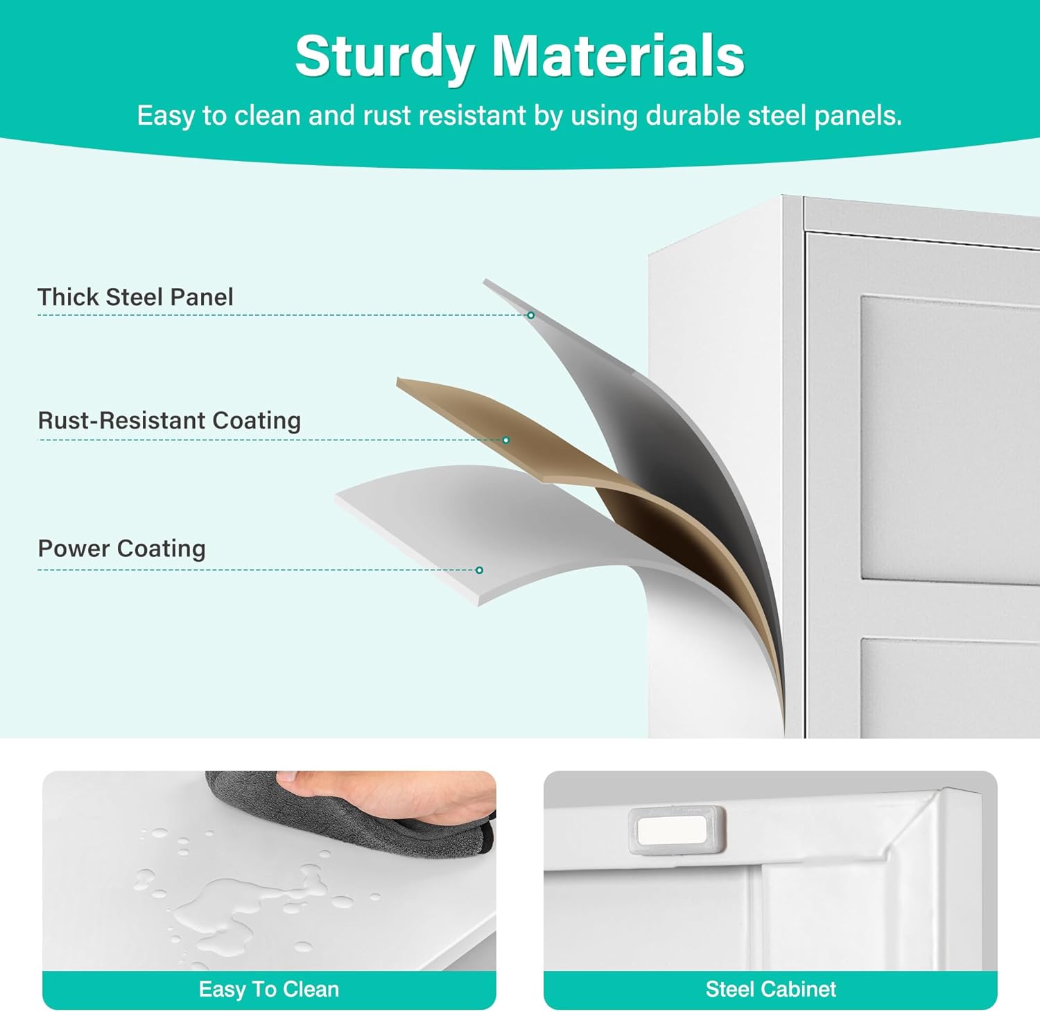 • Sturdy,Durable and Safe: Made of powder-coated steel plate, this cabinet with door and shelf is sturdy,durable and easy to clean.Load capacity is up to 120lbs each shelf. The included anti-tip kit helps secure the pantry cabinets to the wall to give you a safer living space.