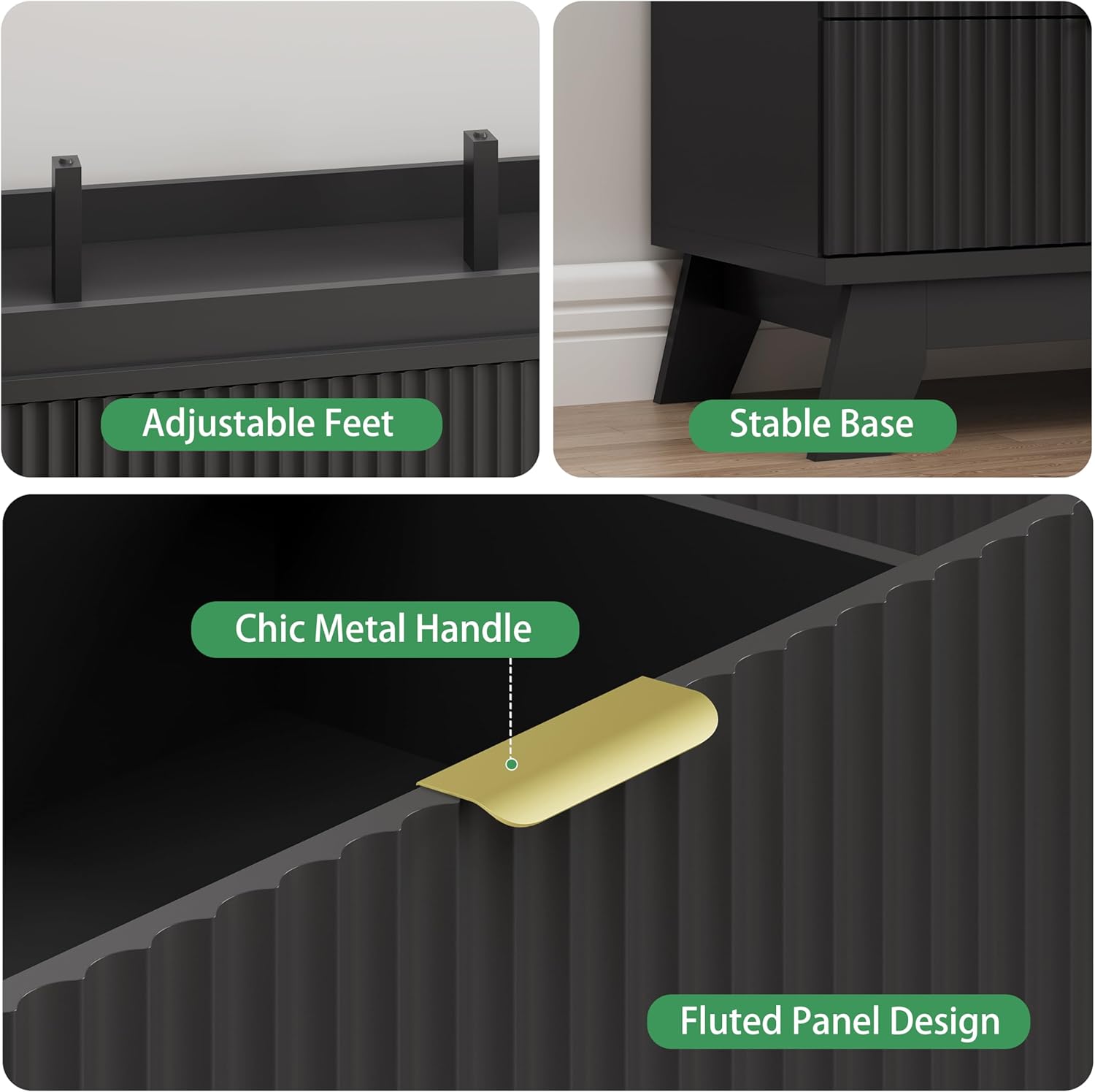 Fluted Dresser for Bedroom with 9 Drawers, 57" Wide Chest of Drawers with Metal Handle, Modern Wood Dresser TV Stand, Wooden Closet Clothes Storage Organizer for Living Room, Hallway, Black