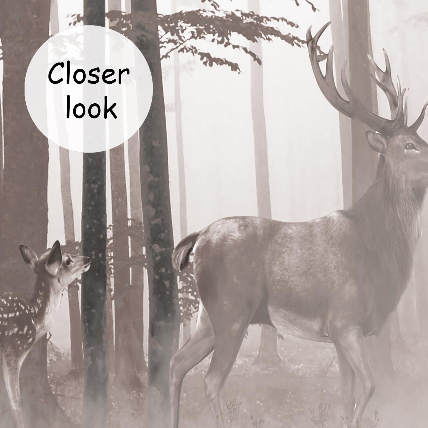 AFZEVEB-Forest Wallpaper Vintage Trees with Deer Wall murals for Bedroom 114"x74" (Not Peel and Stick)
