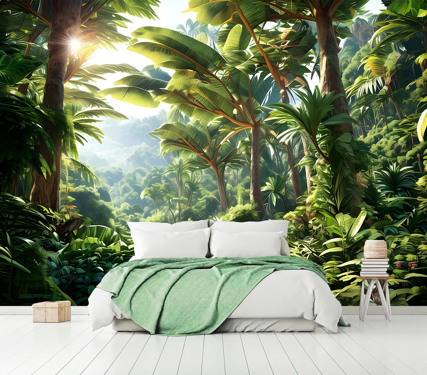 AFZEVEB-Green Tree Wall Mural Tropical Jungle Wallpaper for Bedroom 136"x96"(Not Peel and Stick)