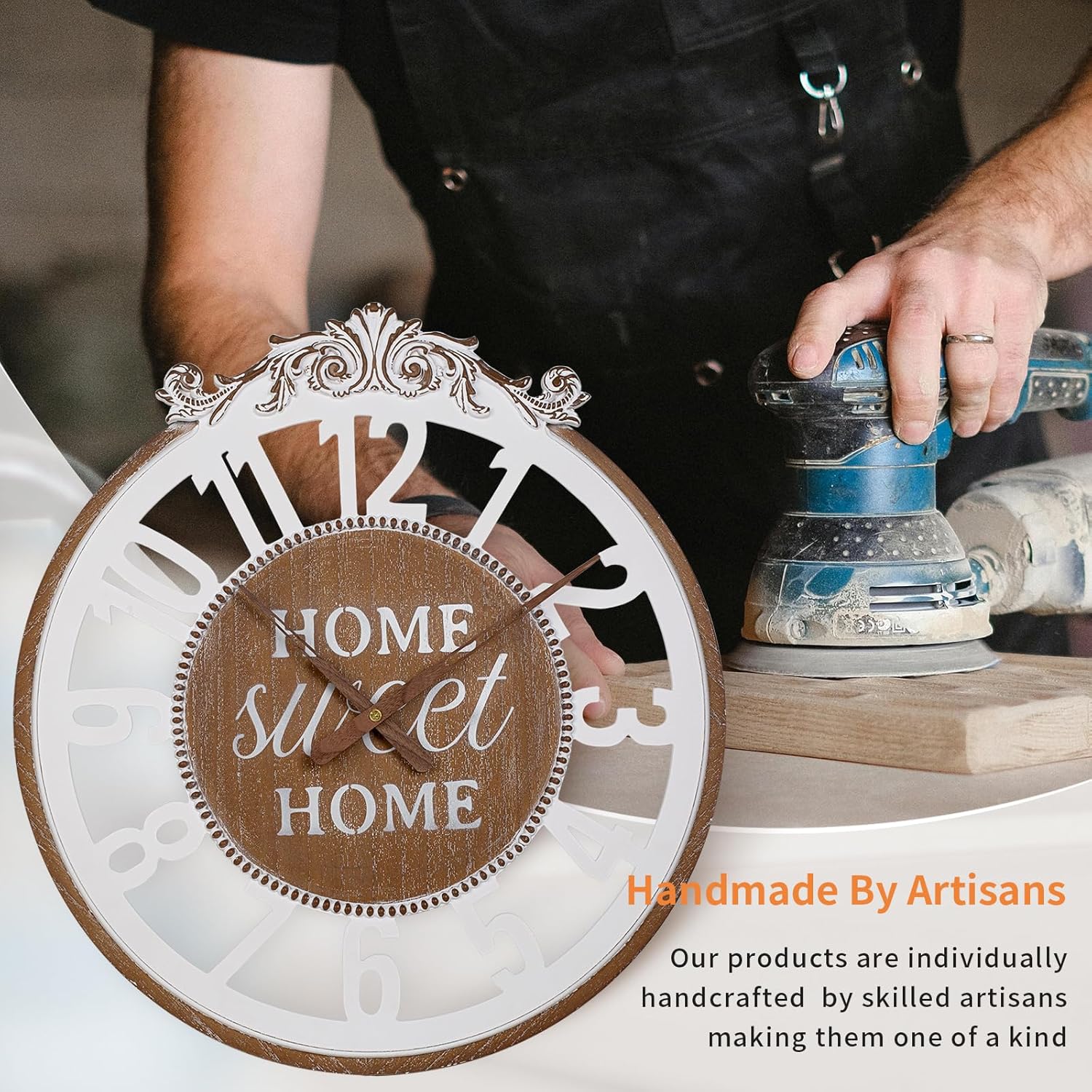 - 【Wall Clock Size 24 Inches】 Crafted from high-quality wood with a hand-carved face, this 24-inch rustic wall clock is both sturdy and elegant. It adds a natural touch and decorative charm to living rooms, bedrooms, kitchens, and more.