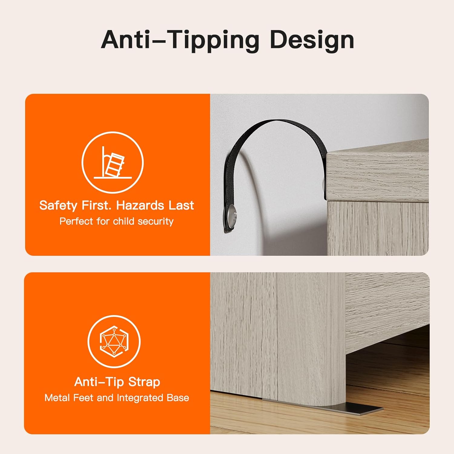 - 【Four-Safety Protection Design】pipishell modern bedroom dresser features rounded edges to minimize the risk of injury for children. It includes an anti-toppling device that can be securely fastened to the wall. The reinforced base and optional metal gaskets provide robust support for this drawer unit, making it an excellent choice for families with children or pets.