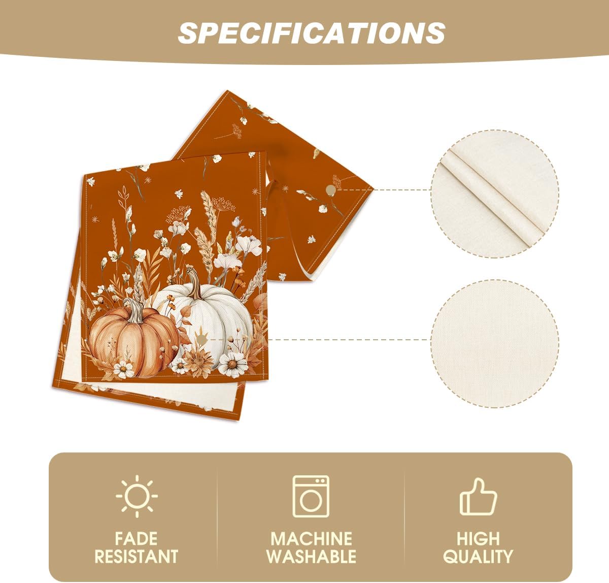- Easy to Clean : Machine wash and lay the table runner flat to dry. Stays the same and as new after every wash. Material: 100% Polyester, no shrink, no fading. Imported, Country of origin: China