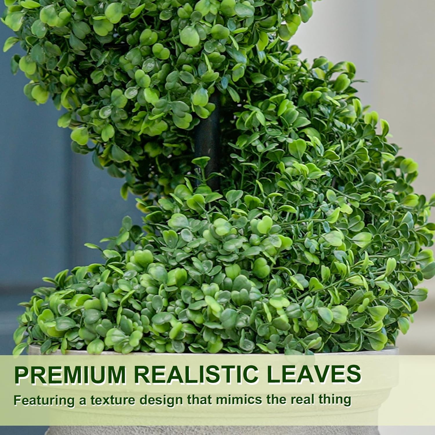 - โ Lifelike Artificial Plant - Realistic looking plant with vibrant colors, and true to life texture details.The Spiral Boxwood Topiary trees artificial indoor are lifelike, when it is windy, it can sway in the breeze, creating a natural and comfortable atmosphere, bringing you comfort and adding color to your room.