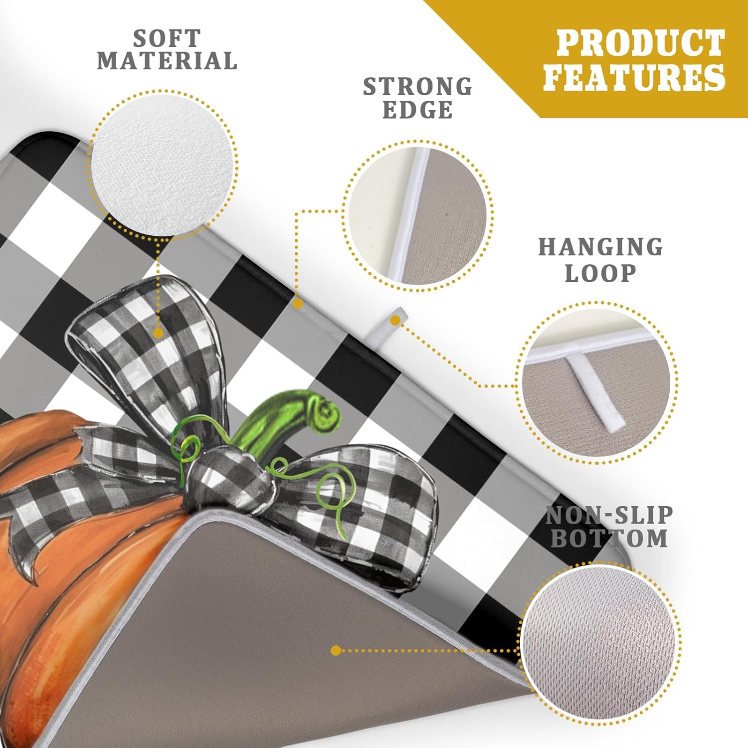 - 【Absorbent】The fall pumpkin dish drying mat is a 3-ply design made of absorbent microfiber, composite sponge, and cotton sateen fabric, the dish drying pad absorbs 4X its weight in water. Perfect for air-drying dishes, glasses, pots, pans, bottles, fruits, and vegetables.