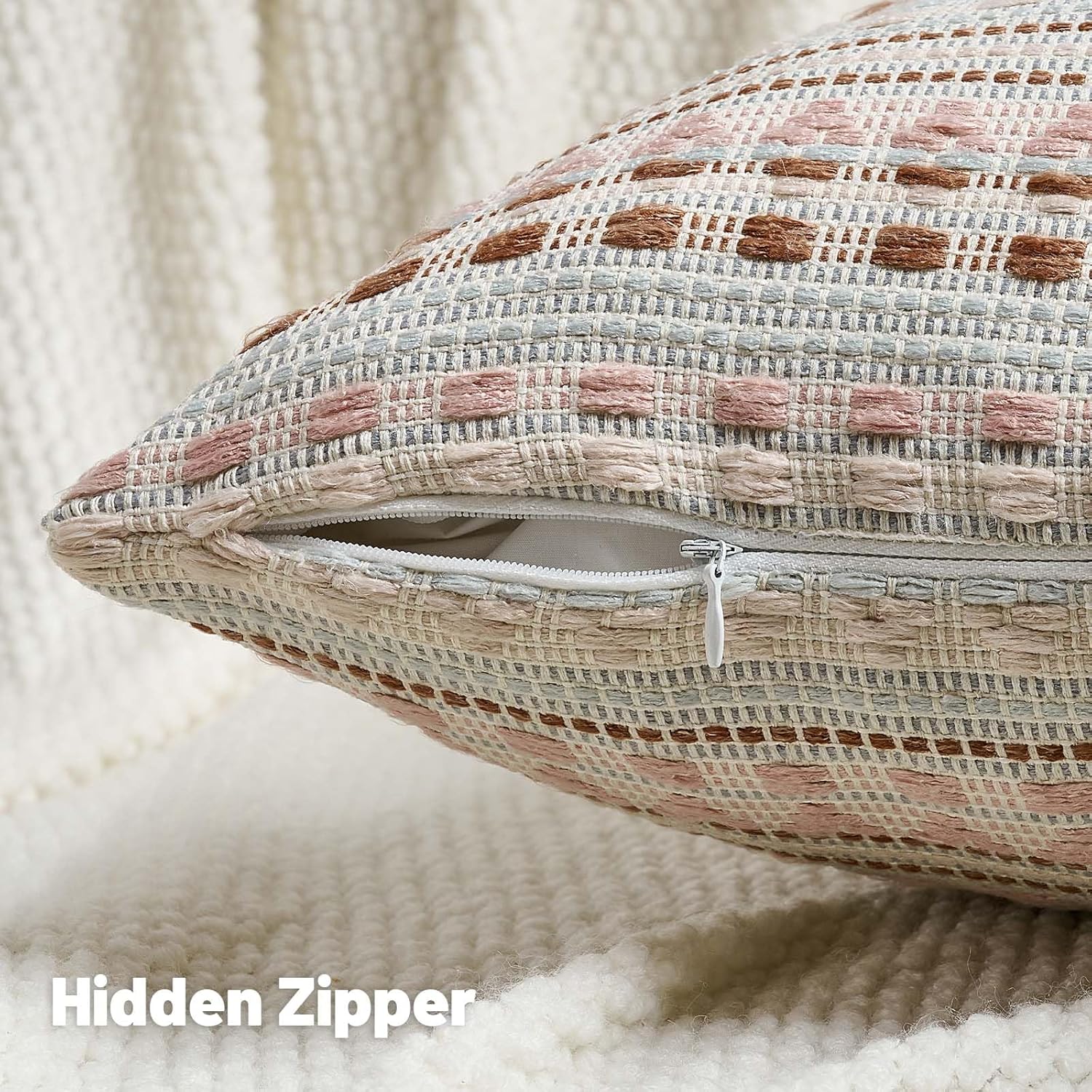 FUTEI Pink Blue Decorative Throw Pillow Covers 20x20 Inch Set of 2,Soft Cozy Chenille Jacquard Textured Cushion Case,Boho Home Decor for Couch Bed Living Room