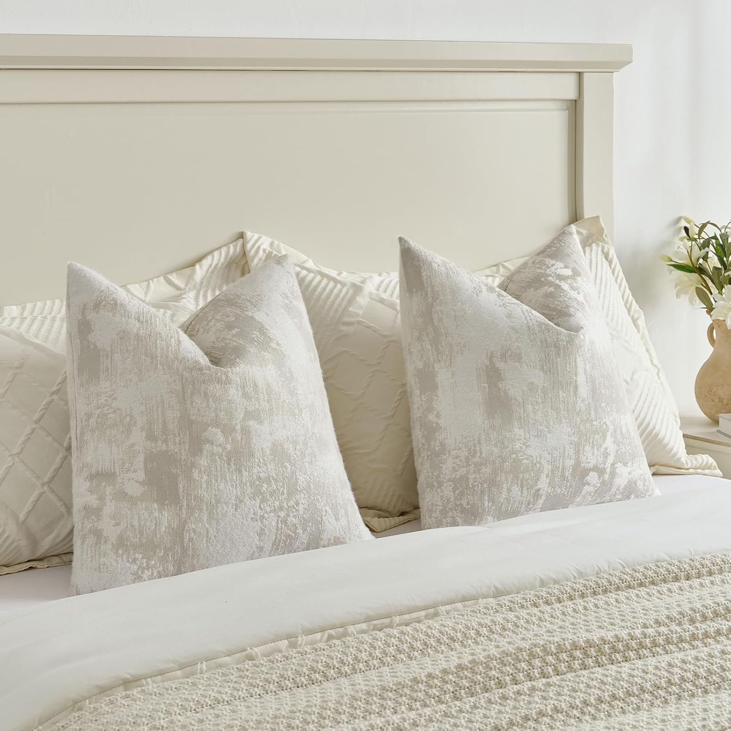 FUTEI Beige White Decorative Throw Pillow Covers 24x24 Inch Set of 2,Soft Faux Cashmere Jacquard - Textured & Cozy Euro Pillow Shams,Modern Home Decor for Couch Bed Living Room