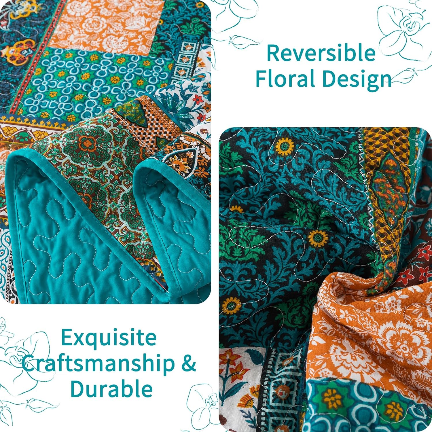 - 【Ultra Lightweight and Worry Free】 Thanks to king quilt bedding set lightweight materials and compact design, this cotton quilt king is easy to store and carry. Whether it's weekend short trips, outdoor camping adventures, or office naps, we can provide you with comfortable warmth anytime, anywhere, making farmhouse quilt set the ideal choice for pursuing a convenient life.