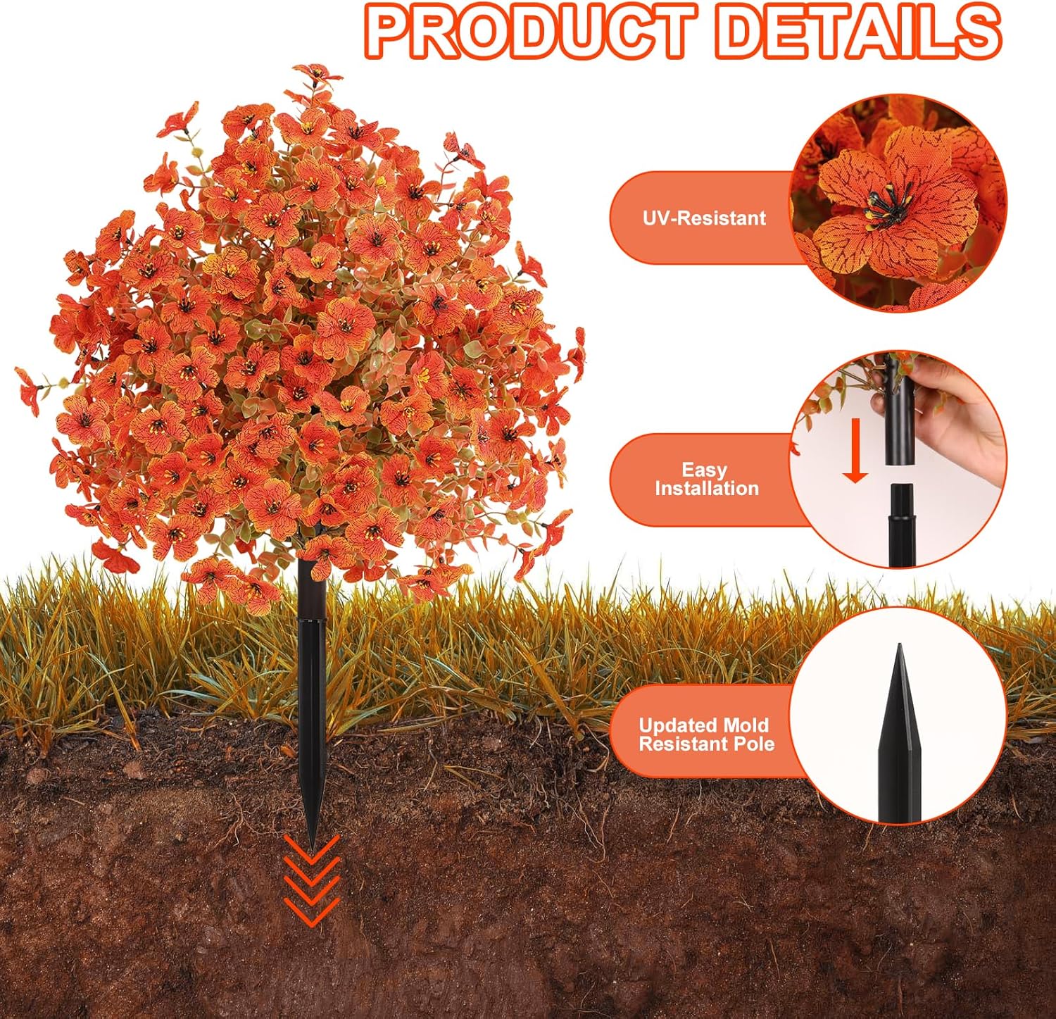 - 🍂【Instant No-Tool Setup】 Transform any space in seconds! Just connect the two parts of greenery artificial fall flowers, fluff them into shape, and push the sturdy ground spikes into soil - no tools or assembly needed. Perfect for quick, seasonal decorating that's completely hassle-free.