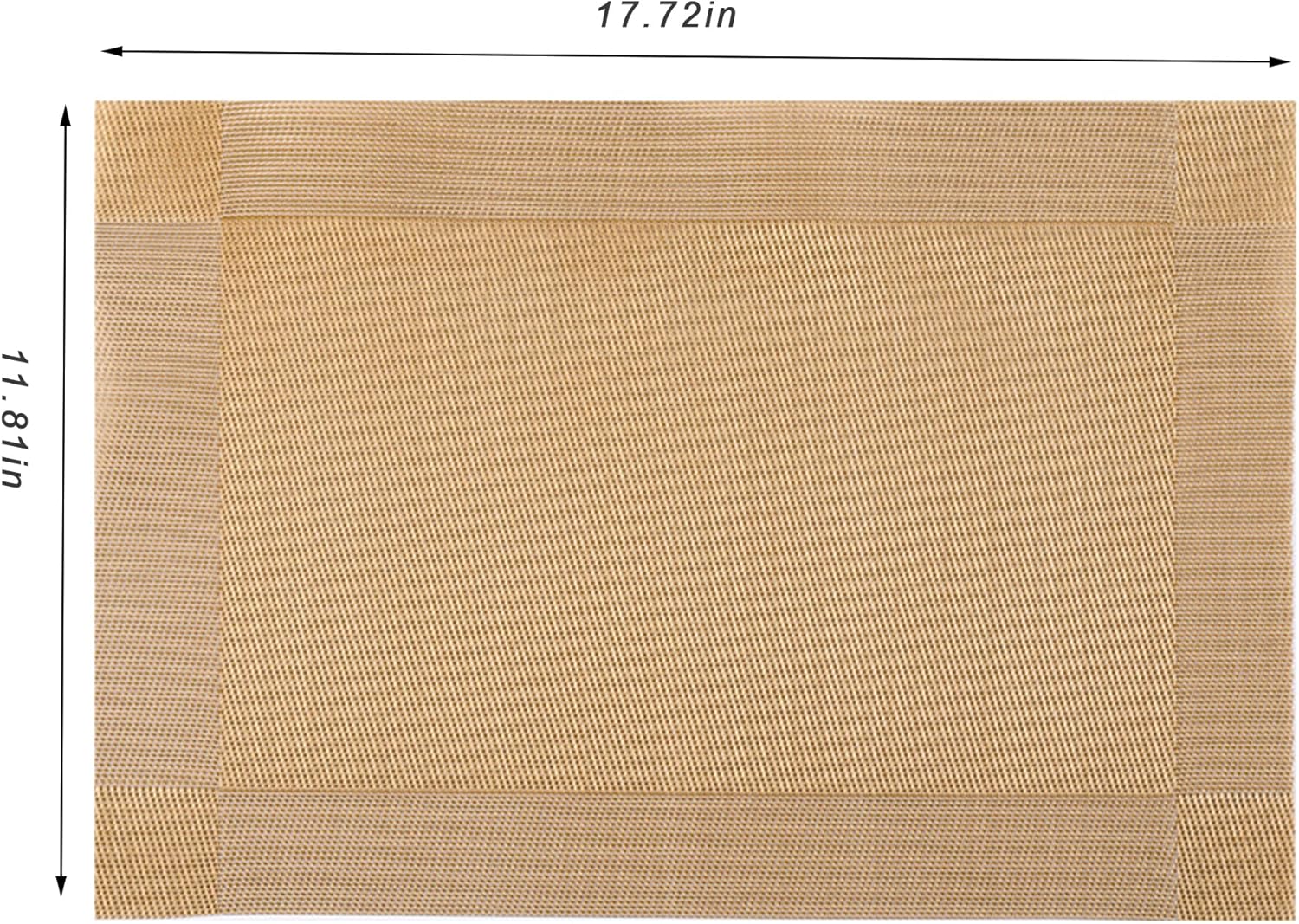 - Protect Your Table:Our placemats protect your table from scratches and spills while adding style. Heat-resistant up to 176°F (80°C), they also keep your food warm. With high-quality woven vinyl construction, they resist stains and water for daily use. Elevate your dining experience with these elegant and durable mats.