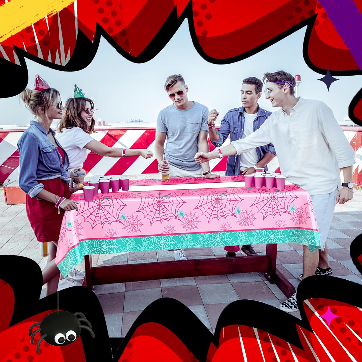 - Pink Spider Birthday Decorations: this set includes 3 spider-themed tablecloths that are suitable for cartoon enthusiasts; They are an ideal addition to any celebration, including spider-themed birthday parties, Halloween parties, cartoon-themed birthdays, and other events