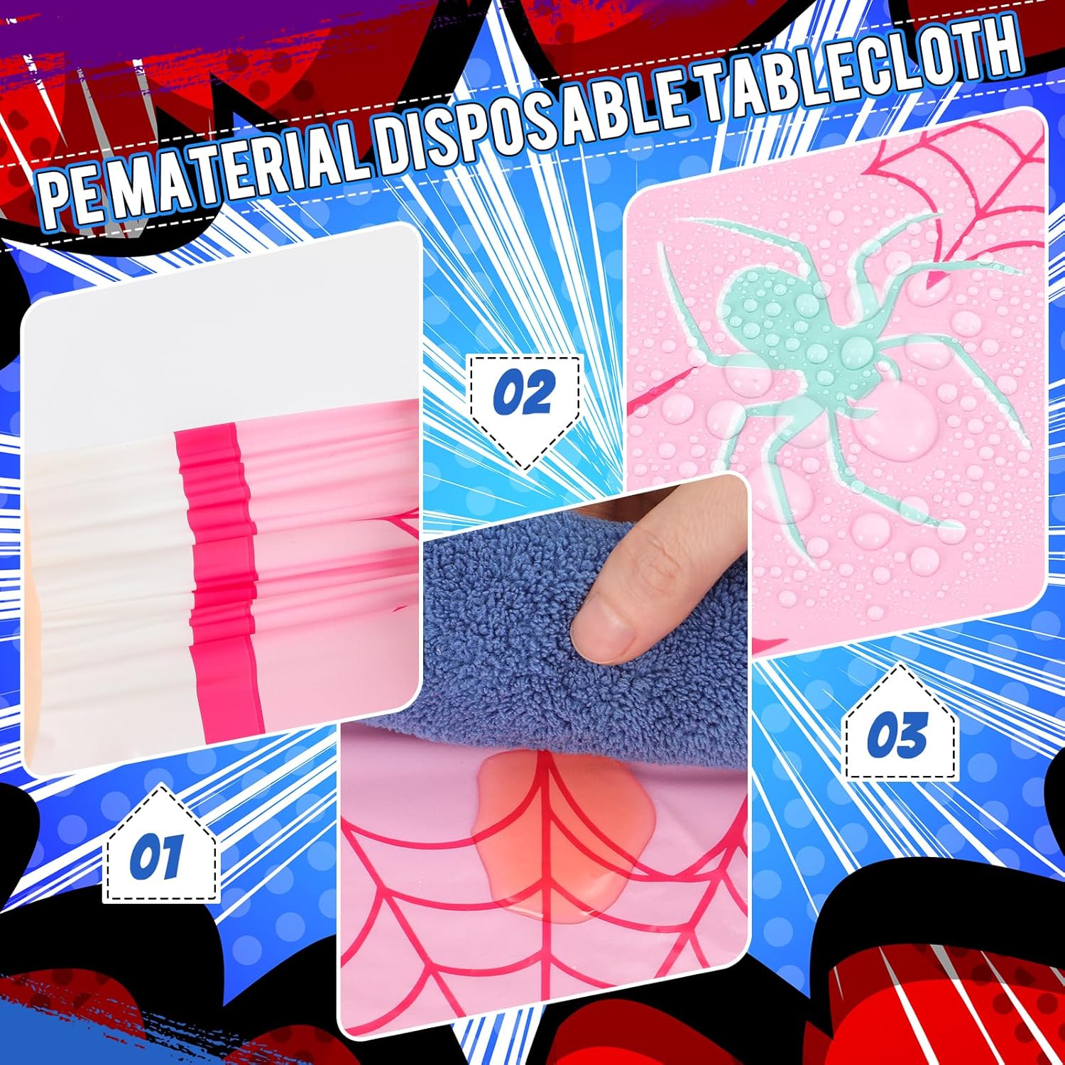 - Durable Material: experience quality with our spider themed birthday table covers; Made from sturdy and reliable plastic, these rectangular tablecloths are waterproof, keeping your tables dry and clean; They're easy to clean, saving you valuable time during party preparations