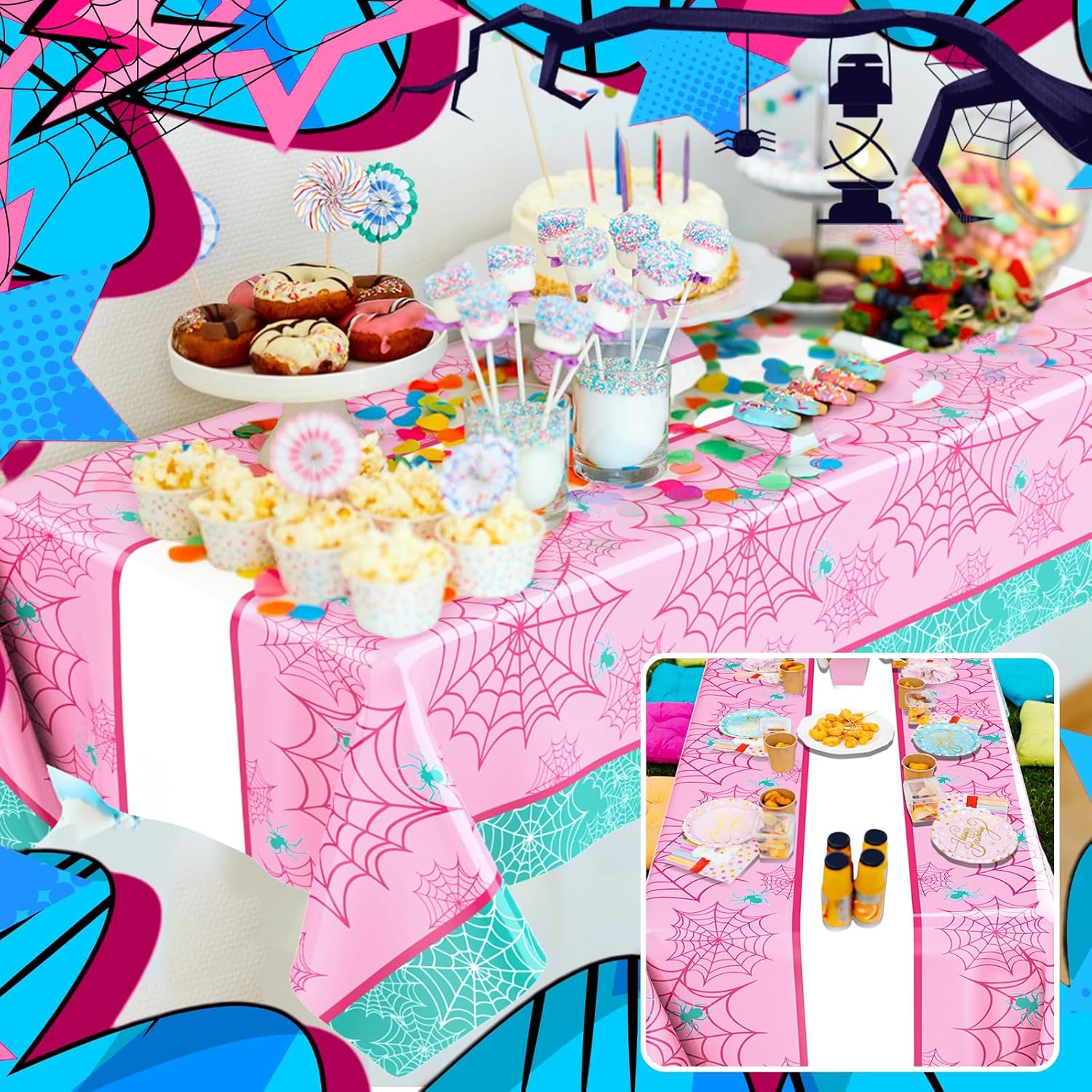 - Ideal Gift: these spider birthday tablecloths make a truly ideal spider party favors; Share your care and wishes by gifting them during pink and green-themed birthday parties, spider parties, fun spider-themed events, anniversaries, and other occasions, to family and friends