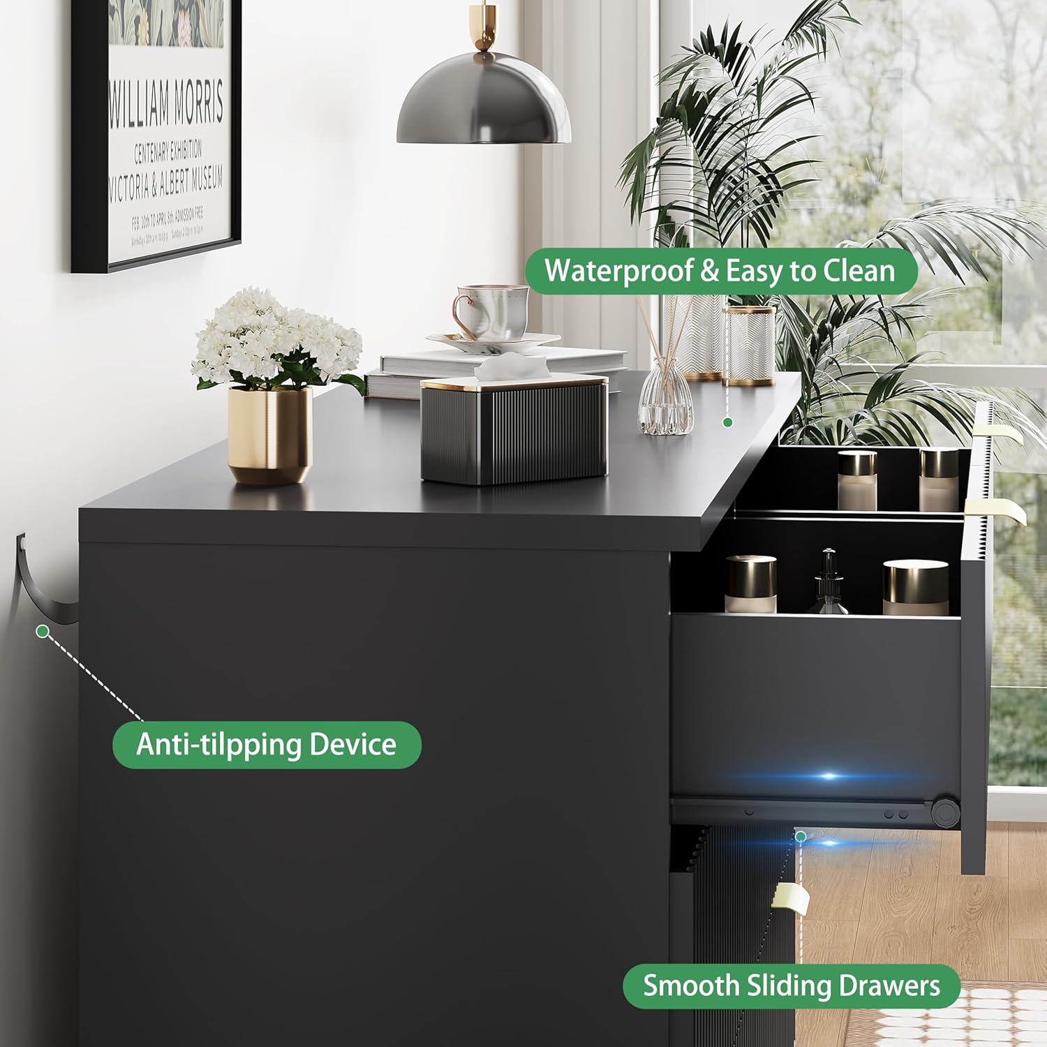 - 【Stability & Safety】The white/black/natural oak dresser is equipped with an anti-tipping device, which can be fixed on the wall to prevent accidents. Each drawer contains a wide metal handle and built-in slide rail, easy to push and pull. Besides, the sturdy base provides this dresser with drawers a strong support and the middle feet can be adjustable to keep balance on uneven floors