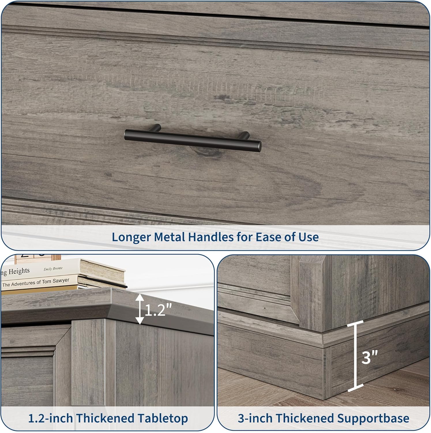 • Farmhouse Charm: This durable bedroom dresser features scratch-resistant finishes, a reinforced 1.2" top, and a sturdy base. Uniquely designed drawer fronts drawers and vintage metal handles add timeless style that complements any decor
