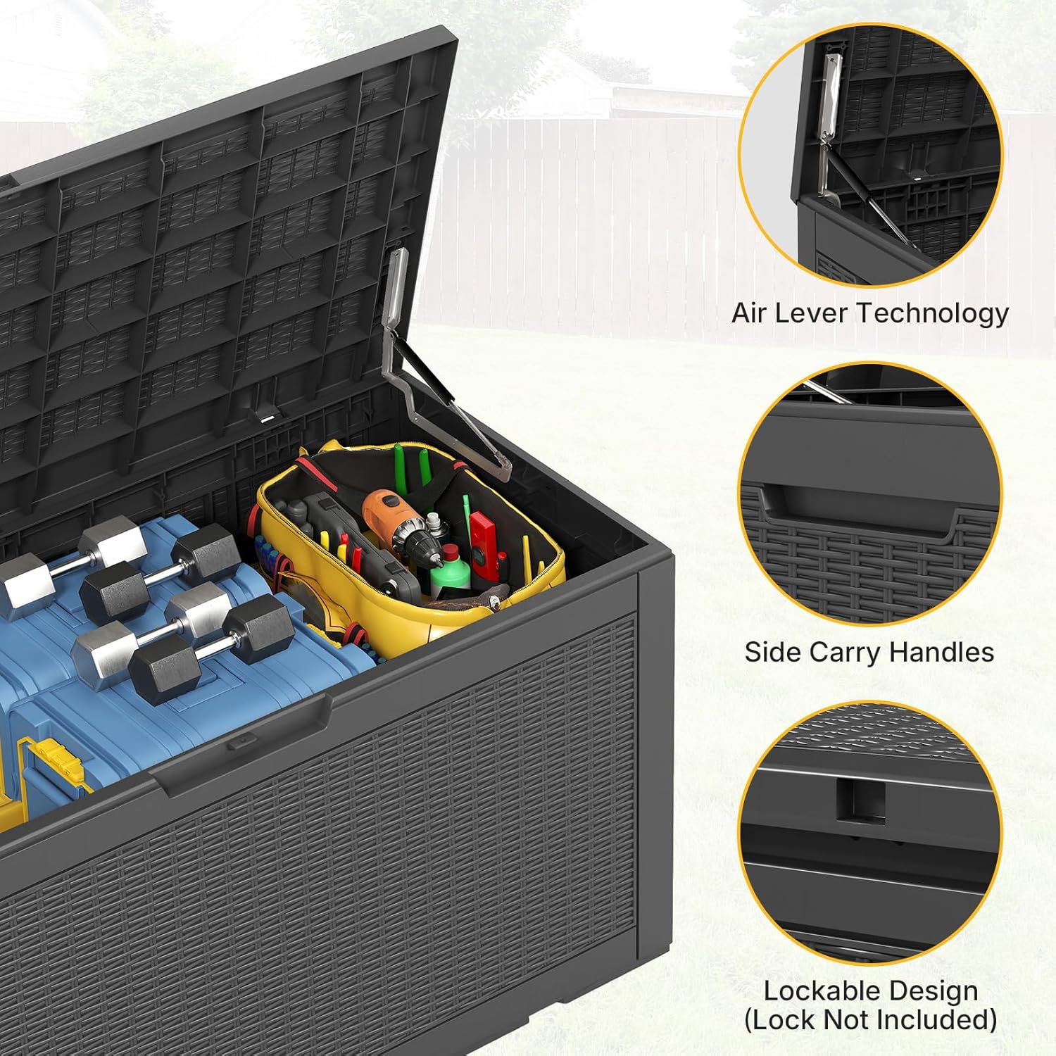 - 【Easy No-Tools Setup】Deck box designed for hassle-free assembly, the patio storage box requires no tools and can be quickly set up using the included clear instructions.