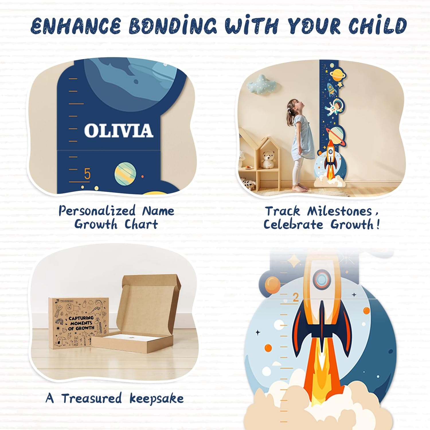 Personalized Name Growth Chart for Wall, Space Height Measurement for Wall, Children Height Chart Ruler, Portable 3D Removable Growth Chart, Wall Height Measurement for Kids