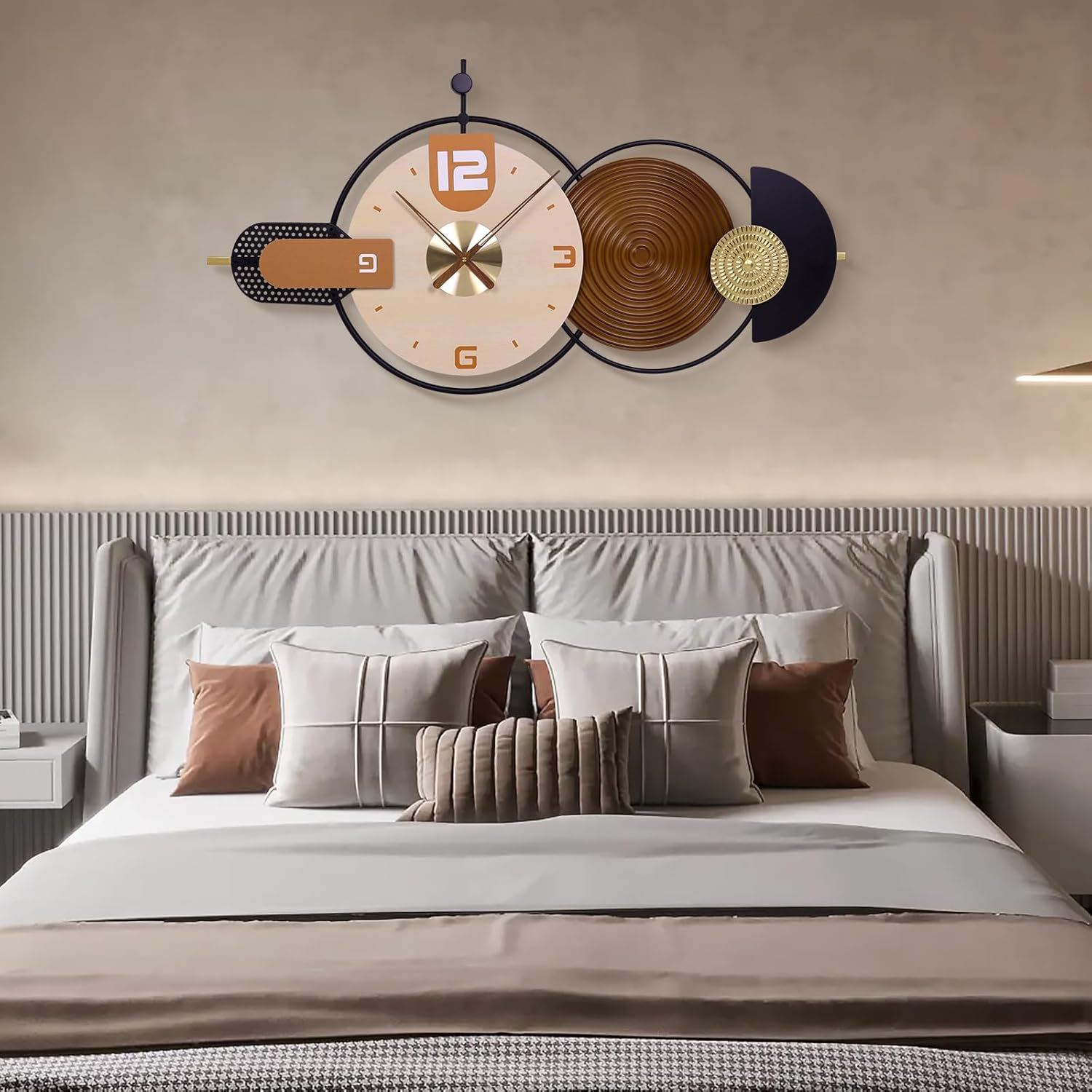 Large Wall Clock for Living Room Modern Wall Clocks Battery Operated Iron and Wood Combination Big Clocks Silent Non Ticking Clock Suitable for Home,Bed Room,Kitchen,Office 33X20inch